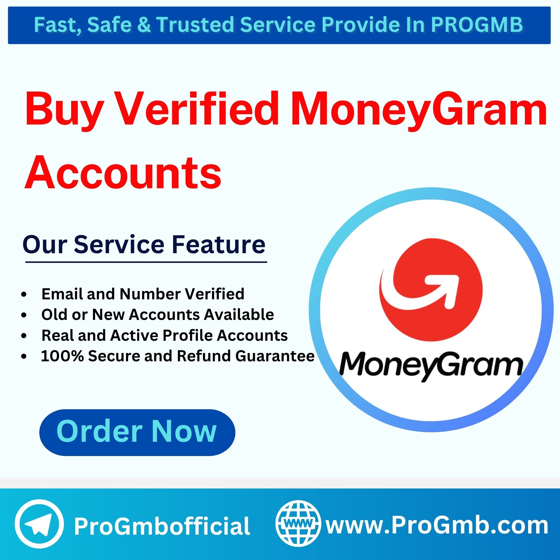 - Our verified MoneyGram accounts are designed to meet the unique needs of our clients and are known for their security and efficiency. Here at PROGMB, we take pride in the work we do.